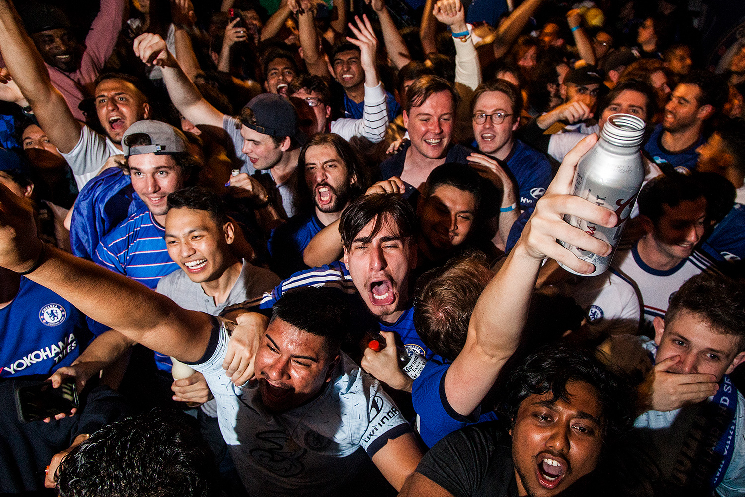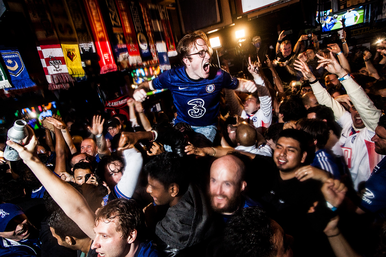 Chelsea fans watch the 2021 Champions League Final in New York City.